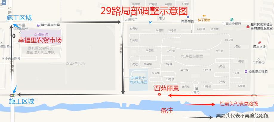 二、29路:首末站由“幸福里農(nóng)貿(mào)市場”臨時調(diào)整為“西苑麗景”。不再途經(jīng)幸福里農(nóng)貿(mào)市場站點。