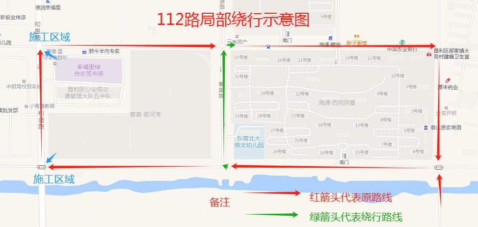 中途如有變化,將根據(jù)實際情況適時調(diào)整。待道路施工完畢,將恢復(fù)原路線。