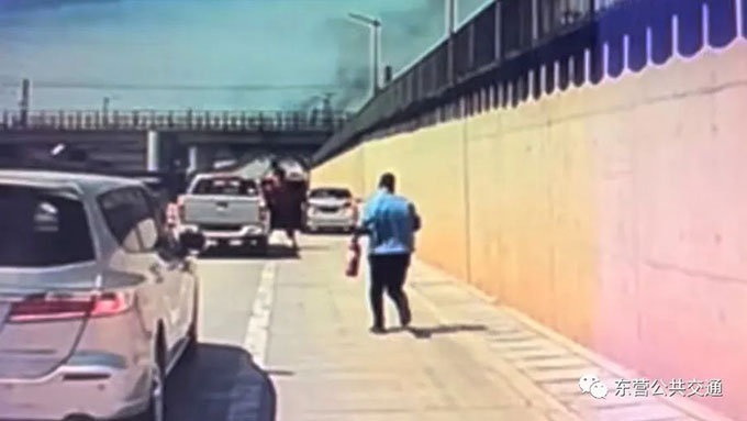 6月30下午,蘇文海像往常一樣駕駛著51路公交車由北往南方向行駛至六戶附近時,看到前面壓車情況嚴重,就慢慢把車停了下來。接著他發(fā)現(xiàn)在遠處一輛私家車正冒著滾滾濃煙,車上的一堆家具,外包裝已經(jīng)有了明火,車主和周圍旁觀市民正手足無措的站在車旁邊,情況十分緊急。蘇文海見狀立刻打開公交車應(yīng)急雙閃燈,提著車里的兩個滅火器就沖了下去。