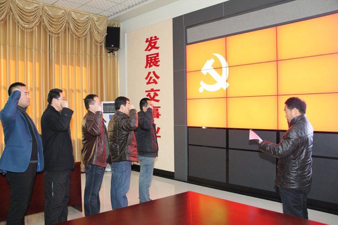 12月23日,市公交公司組織2012年下半年新入黨的黨員進(jìn)行了入黨宣誓儀式暨培訓(xùn)活動(dòng)?;顒?dòng)由黨辦主任王修云主持,公司黨委副書(shū)記劉海參加活動(dòng)并做了動(dòng)員講話。