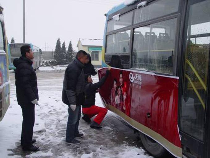 時(shí)值立春節(jié)氣,一場(chǎng)鋪天蓋地的大雪似乎讓春天的腳步放慢了些,但是公司廣告部制作人員的工作節(jié)奏卻沒(méi)有因此而減慢。為保證所有廣告畫(huà)面春節(jié)前能夠順利及時(shí)張貼完畢,他們冒著冰雪嚴(yán)寒,加班加點(diǎn)在各處車場(chǎng)緊張而有序地忙碌著。他們不分時(shí)段,根據(jù)車輛班次間隔來(lái)及時(shí)調(diào)整工作時(shí)間,白天時(shí)間調(diào)整不了就晚上加班,不畏風(fēng)雪,不畏嚴(yán)寒,克服困難,積極肯干,他們用自己的工作熱情和干勁,迎接著春節(jié)的到來(lái),確保了廣大客戶的切身利益,為新一年的工作開(kāi)了個(gè)好頭。