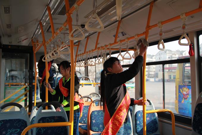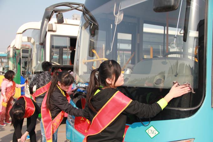 2013年3月9日上午,市公交公司汽車一隊(duì)聯(lián)合東營市職業(yè)學(xué)院會計(jì)學(xué)院的大學(xué)生開展了義務(wù)活動。參加義務(wù)活動的38人分為兩個(gè)活動小組,一組乘坐公交車上路為老、弱、病、殘、孕等特需乘客服務(wù),以及在站點(diǎn)疏導(dǎo)乘客;另一組在汽車一隊(duì)駐地幫助擦洗公交車,清掃車廂衛(wèi)生。大家工作起來井然有序,有條不紊,都認(rèn)真投入其中,尤其活躍在車廂為乘客服務(wù)的志愿者們,更是得到了乘客的一致好評,成為公交車上一道亮麗的風(fēng)景。