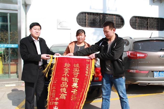 近日,市民李先生拿著一面寫有“誠實可信美名揚,拾金不昧品德高”的錦旗來到市公交公司出租車運營中心,感謝出租車司機張守春師傅拾金不昧的高尚品德。