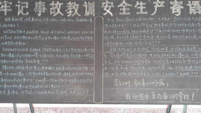 近日,市公交公司汽車三隊(duì)為貫徹落實(shí)好公司第四季度安委會(huì)的會(huì)議精神,做好駕駛員工安全教育,進(jìn)一步抓好車隊(duì)安全生產(chǎn)工作,一是針對(duì)鄉(xiāng)鎮(zhèn)線路的營(yíng)運(yùn)特點(diǎn),專門出了一期“安全生產(chǎn)黑板報(bào)”,二是專門制作了一幅以“注重安全,關(guān)愛生命”為主題的展板,擺放到大廳里,以此警醒和告誡廣大一線駕駛員,行車中要把安全放在首位,牢記遵紀(jì)守法,按章行車、謹(jǐn)慎駕駛、確保安全。