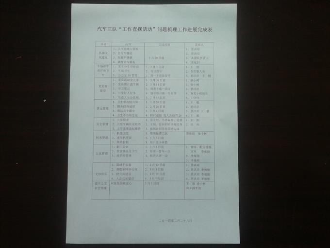 工作查擺專題會的召開,使得每名管理人員從思想上進(jìn)行了深刻反思,觸動了靈魂,實(shí)現(xiàn)自我反省、自我加壓、自我糾正,以期達(dá)到管有方向、干有目標(biāo),再結(jié)合車隊(duì)周二周五晨會上的工作匯報(bào)和整改進(jìn)度督導(dǎo),進(jìn)一步消除管理中的一些慵懶撒和坐等靠現(xiàn)象。