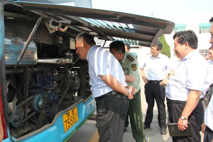 李俊峰一行首先來到車場對安全錘、滅火器、發(fā)動(dòng)機(jī)消防彈、逃生口、攝像頭等公交車輛消防設(shè)施和油庫、加氣站等重點(diǎn)部位進(jìn)行了認(rèn)真查看。隨后,又來到公交調(diào)度指揮中心觀看了公交智能調(diào)度系統(tǒng)及3G視頻監(jiān)控系統(tǒng)的講解和演示。在聽取了市公交公司朱新民經(jīng)理關(guān)于安全管理工作的匯報(bào)后,李市長對市公交公司安全管理工作中所做的努力和取得的成績給予了充分的肯定。同時(shí),對下一步安全工作提出了要求:一要確保所有智能化設(shè)施完好率在100%以上,切實(shí)發(fā)揮智能調(diào)度、視頻監(jiān)控等科技手段的作用。二是確保每輛公交車的安全錘、滅火器、發(fā)動(dòng)機(jī)消防彈等消防設(shè)施齊全有效。三是對所有公交車輛制動(dòng)、燈光、油路、電路等重點(diǎn)安全部位進(jìn)行一次全面普查,確保車輛安全技術(shù)狀況良好。四是開展一次公交車輛消防實(shí)戰(zhàn)演練,確保每個(gè)公交駕駛員在遇突發(fā)事件時(shí)能夠沉著應(yīng)對,冷靜處置,有序疏導(dǎo)乘客快速逃離事故現(xiàn)場,進(jìn)一步提高公交駕駛員的應(yīng)急處理能力和乘客的快速逃生技能。
