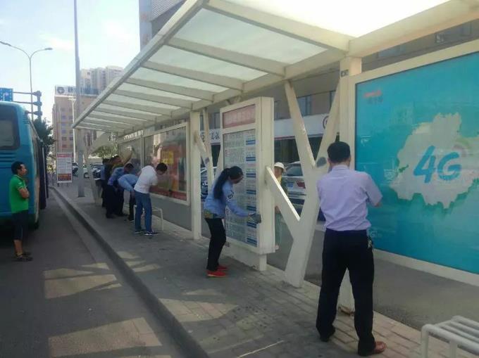 公交候車(chē)亭上面粘有透明膠、不干膠、漿糊等,有的候車(chē)亭燈箱還被糊上了好幾層廣告,黨員們手拿小鏟子、小刷子、清潔球、水桶等清除工具,三人一組、兩人一伙,有的噴水,有的用鏟刀用力清除,一個(gè)個(gè)干的熱火朝天。經(jīng)過(guò)三個(gè)多小時(shí)的清理,西四路兩側(cè)公交候車(chē)亭衛(wèi)生死角和野廣告被清理干凈,市民的候車(chē)環(huán)境衛(wèi)生得到很大改觀。在候車(chē)亭等車(chē)的市民們高興地說(shuō):“站牌上到處都是小廣告,各種顏色的,像牛皮癬一樣討厭,這些黨員真能干,小廣告沒(méi)有了,在候車(chē)亭等車(chē)心情也舒暢了?!?BR> 通過(guò)本次活動(dòng),黨員們用自己的實(shí)際行動(dòng)為清潔公交候車(chē)亭、愛(ài)護(hù)公共環(huán)境作出了努力,使公交候車(chē)亭外觀得到了凈化,營(yíng)造了一個(gè)整潔美觀、文明和諧的候車(chē)環(huán)境,增強(qiáng)了黨組織的凝聚力和戰(zhàn)斗力,從而使黨員們更好地踐行黨員先鋒模范作用,得到了市民們的一致好評(píng)。