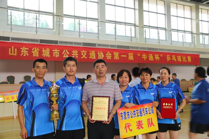 7月8日,山東省城市公共交通協(xié)會(huì)第一屆“中通杯”乒乓球比賽在章丘交通技校拉開(kāi)帷幕,來(lái)自全省17地市公交系統(tǒng)的22支代表隊(duì)參加了比賽。東營(yíng)市公交公司代表隊(duì)由6名選手組成,分別參加了男子團(tuán)體、男子單打和女子團(tuán)體、女子單打比賽,運(yùn)動(dòng)員們?cè)诒荣愡^(guò)程中揮汗如雨,積極拼搏,不到最后一刻決不放棄。歷經(jīng)三天的激戰(zhàn),最終,東營(yíng)公交代表隊(duì)榮獲了男子團(tuán)體亞軍的好成績(jī),張振泉獲得了男子單打第五名,同時(shí)獲得了賽事組委會(huì)頒發(fā)的“優(yōu)秀組織獎(jiǎng)”。