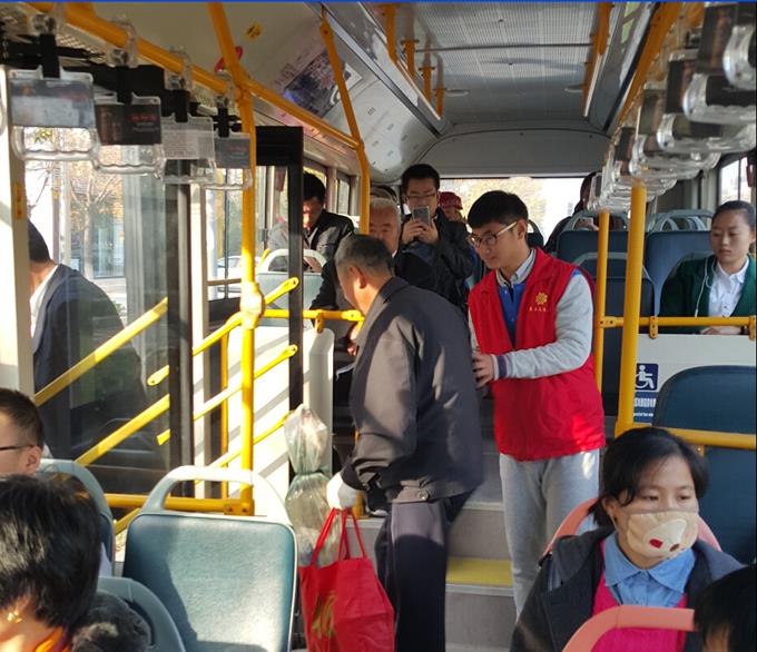 為進一步營造文明城市復核迎測的濃厚氛圍,弘揚“奉獻、友愛、互助、進步”的志愿服務(wù)精神,踐行常態(tài)化志愿服務(wù)機制,市公交公司于10月31日上午聯(lián)合職業(yè)學院開展了志愿服務(wù)活動。志愿服務(wù)活動主要是引導乘客有序乘車,幫助老弱病殘孕等特殊乘客優(yōu)先乘車及主動為老弱病殘孕讓座或倡導乘客保持車廂衛(wèi)生以及引導公交車輛規(guī)范??康鹊?。