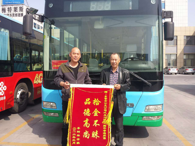 近日,市民李樹(shù)林先生帶著家人,將一面寫(xiě)有“拾金不昧,品德高尚”的錦旗送到了市公交公司汽車(chē)六隊(duì)。