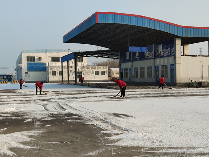 經過一個多小時的奮戰(zhàn),大家將站內的主要出入口和道路的積雪全部清掃干凈。雖然大家弄濕了鞋子、弄臟了衣服,但是看著為客戶開辟的這條暢通之路,每個人臉上都洋溢著自豪的笑容。