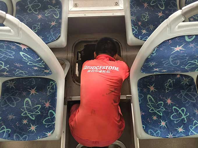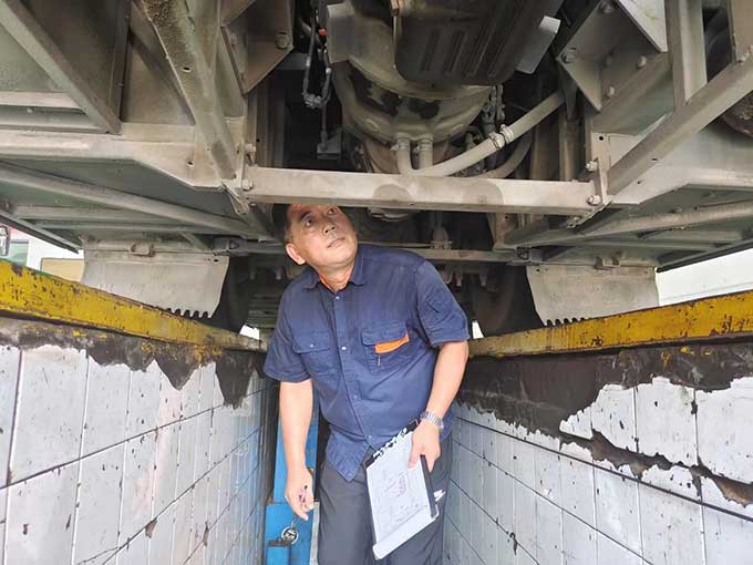 驕陽(yáng)似火,汗水流淌,沾了頭發(fā),濕了臉頰,卻阻擋不了他們對(duì)工作的熱情,這是一種承諾,更是一種責(zé)任與擔(dān)當(dāng)。相比爬車(chē)頂維修空調(diào)的辛苦,鉆地溝也的滋味更不好受。不足一米深的地溝里,不僅悶熱,而且容易沾滿(mǎn)油垢。背靠堅(jiān)硬的水泥瓷磚、頭頂公交車(chē)底盤(pán),承受車(chē)輛部件散發(fā)的熱量,猶如鉆進(jìn)烤箱。狹小的空間內(nèi),悶熱的空氣彌漫著刺鼻的機(jī)油味,底盤(pán)零部件上的塵土和油污隨著維修時(shí)的觸碰不時(shí)地落在頭上、脖子里、衣服上。為了排查故障,維修職工需要一直貓著腰、歪著頭,手上、身上滿(mǎn)是機(jī)油和污垢。幾分鐘的時(shí)間,豆大的汗珠就成串往下掉,工作服更是緊緊地“貼”在了身上。有時(shí)候,要檢修的部位比較靠里,在車(chē)底也無(wú)法觸及,只能從車(chē)廂里打開(kāi)后座,順著幾十厘米直徑的小洞‘鉆進(jìn)去’,基本上就是上半身在發(fā)動(dòng)艙內(nèi),下半向在車(chē)廂內(nèi)。盡管如此,保修職工仍然憑借頑強(qiáng)的斗志和精益求精的工匠意識(shí),克服重重困難,完成各項(xiàng)保修任務(wù)。