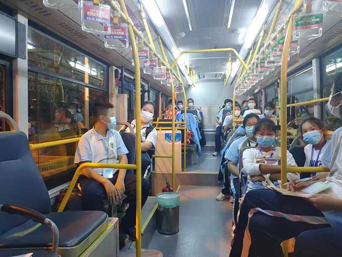 為平穩(wěn)有序開學(xué)保駕護航,精準對接學(xué)生家長需求,努力營造家長放心、學(xué)生滿意、社會認可的安全出行環(huán)境,東營公交依托東營智慧公交系統(tǒng)推出“定制公交”助學(xué)服務(wù),助學(xué)服務(wù)自上線以來,深受學(xué)生家長的喜愛。2022年8月累計收到通學(xué)服務(wù)相關(guān)需求接近萬條,東營公交快速響應(yīng),根據(jù)前期收集到的學(xué)生通學(xué)出行需求,統(tǒng)籌整合公交運力資源,規(guī)劃開通30條助學(xué)“定制公交”線路,71條“專線公交”,每日安排運行262個班次,點對點服務(wù)學(xué)生出行,助力學(xué)生直達校園,全力保障學(xué)生出行。同時為更好地守護學(xué)子出行,公交駕駛員發(fā)車前均會進行酒測和體溫檢測,對運營車輛進行全面檢查,車輛返回場站進行消毒清理,在全面做好各項防疫措施的同時,確保學(xué)生們的乘車安全。