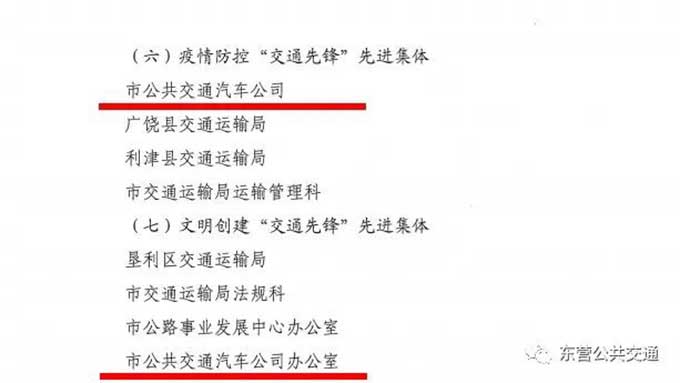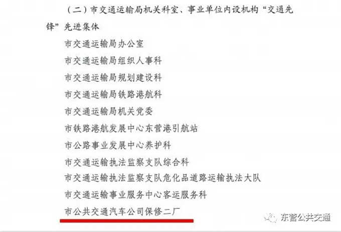 會上,加快建設(shè)交通強(qiáng)國山東示范區(qū)“東營樣板”工作機(jī)制辦公室印發(fā)了2022年度全市交通運(yùn)輸工作交通先鋒先進(jìn)集體及先進(jìn)個(gè)人表彰決定。市公交公司、市公交公司辦公室、市公交公司保修二廠獲得交通先鋒先進(jìn)集體榮譽(yù)稱號,2名同志獲得交通先鋒先進(jìn)個(gè)人榮譽(yù)稱號。