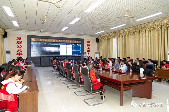 啟動(dòng)儀式結(jié)束后,大家統(tǒng)一乘公交車來(lái)到市公交集團(tuán),參加?xùn)|營(yíng)市“公交開放日”活動(dòng),現(xiàn)場(chǎng)觀摩了市公交智能調(diào)度指揮中心、客服中心以及汽車一隊(duì),詳細(xì)了解了智慧公交系統(tǒng)建設(shè)、公交業(yè)務(wù)辦理、車隊(duì)日常運(yùn)營(yíng)等情況,真正“零距離”“面對(duì)面”接觸公交、感受公交。