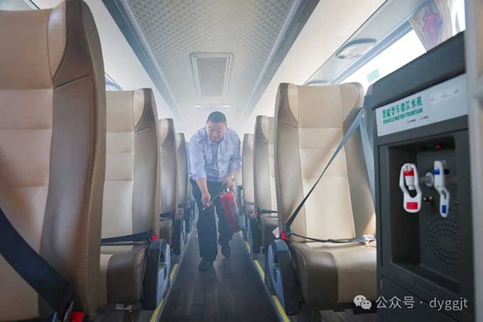 演練重點(diǎn)圍繞公交車、旅游客車發(fā)生火災(zāi)應(yīng)急處置、消防器材使用、滅火演練三方面進(jìn)行。演練設(shè)置了滅火器、應(yīng)急錘、門、窗等應(yīng)急設(shè)施的使用操作、發(fā)生火災(zāi)時(shí)人員疏散、應(yīng)急逃生、報(bào)告等流程環(huán)節(jié),突出了演練的實(shí)戰(zhàn)性和實(shí)效性。
