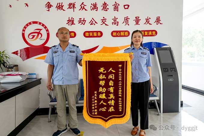 6月27日,市民劉先生和魏女士將一面印有“人間自有真情在 無(wú)私幫助暖人心”的錦旗,送到市公交集團(tuán)客服中心,以感謝市公交集團(tuán)客服中心與汽車(chē)一隊(duì)接力幫助尋找孩子的暖心事跡。