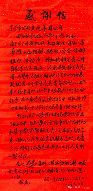 近日,市幸福里社會(huì)服務(wù)中心的燕女士將一封飽含感恩之情的感謝信送至市公交集團(tuán)通勤車隊(duì),以表達(dá)對(duì)該車隊(duì)8名駕駛員熱心周到服務(wù)的深深謝意。