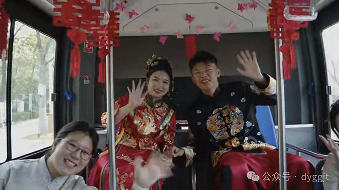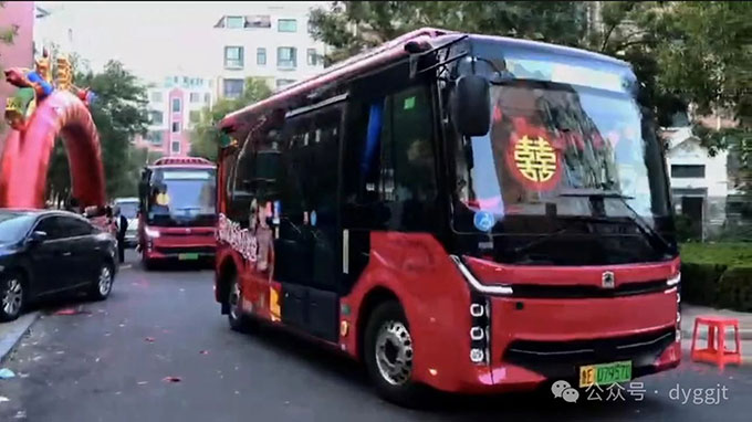 這兩輛公交車(chē)跟隨著迎親隊(duì)伍,高調(diào)得“秀恩愛(ài)”,吸引了無(wú)數(shù)的目光和祝福。寬敞的車(chē)廂,可以輕松容納一眾親朋好友,笑聲、祝福聲此起彼伏,為新人的幸福時(shí)刻,增添了更多的溫馨色彩。