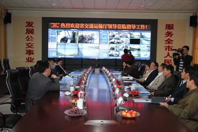 4月11日下午,省交通運(yùn)輸廳副廳長謝濤一行,在市交通運(yùn)輸局黨委書記、局長李兆君、市公路局局長王泮清、市交通運(yùn)輸局黨委副書記鄭月成、市公路局副局長董安林、市運(yùn)管處處長李??∫约笆泄还窘?jīng)理朱新民等有關(guān)領(lǐng)導(dǎo)的陪同下,到市公交公司對(duì)信息化建設(shè)進(jìn)行了實(shí)地檢查指導(dǎo)。