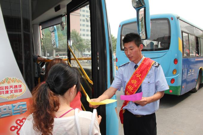 為了貫徹落實(shí)市委、市政府建設(shè)生態(tài)文明典范城市總體要求,深入推進(jìn)市局“五城聯(lián)動(dòng)”統(tǒng)一集中行動(dòng),確保各項(xiàng)任務(wù)指標(biāo)的順利實(shí)現(xiàn),市公交公司于5月11日上午在我市東西城以及八分場(chǎng)共7處主要站點(diǎn)開展了“文明乘車,從我做起”文明勸導(dǎo)活動(dòng)。