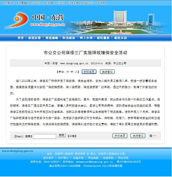 2012年4月4日東營市政府網(wǎng)站報道.